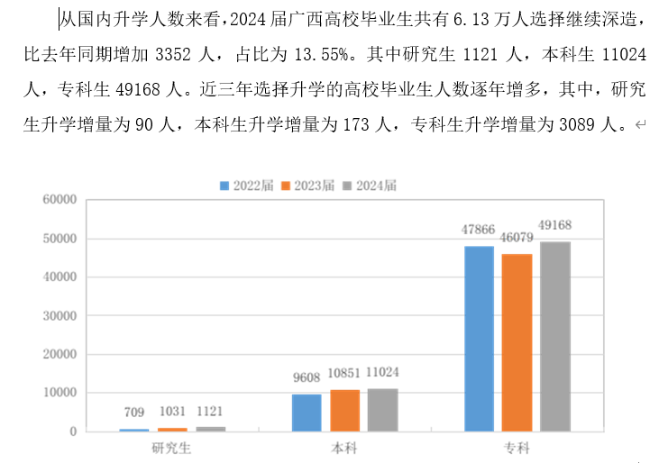 近三年广西各学历层次高校毕业生升学情况