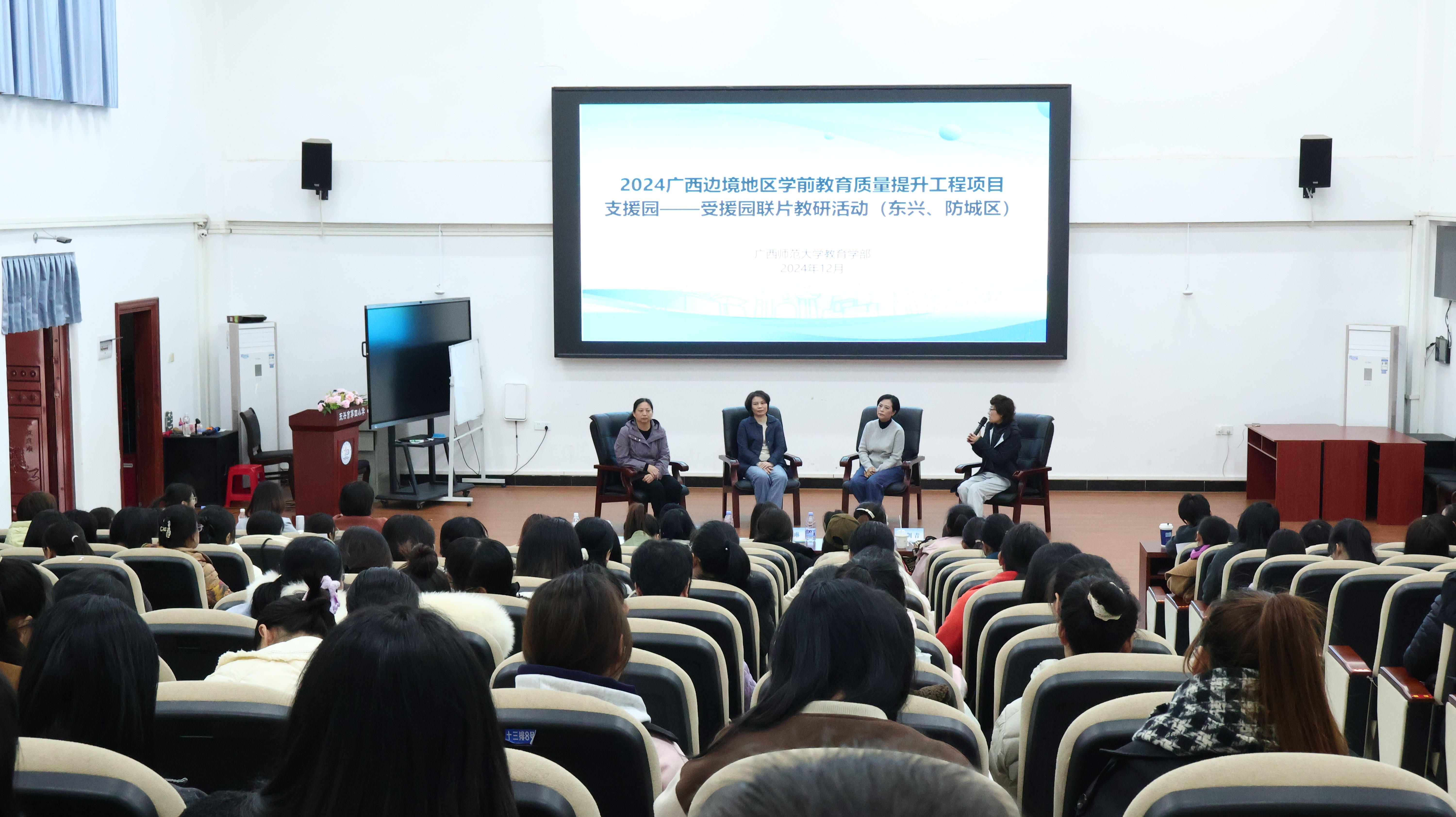 2024年12月14—16日,2024年度“广西边境地区学前教育质量提升工程”项目支援园——受援园联片教研活动在防城港市东兴市顺利举办,活动以“基于儿童立场的幼儿园一日活动安排与实施”为主题,通过专题讲座分享、互动实训研讨等形式开展。东兴市、防城港市防城区的10所受援园及其支援园的60名教师参加了活动。