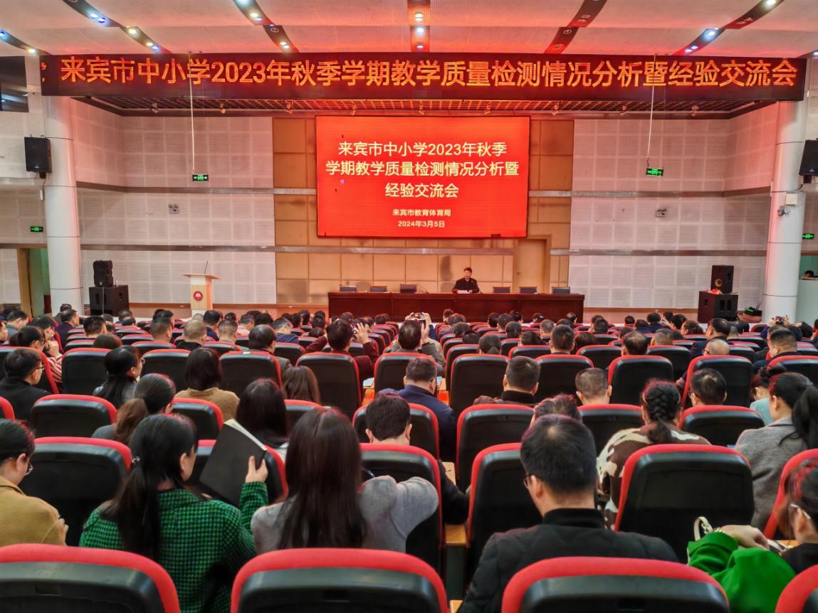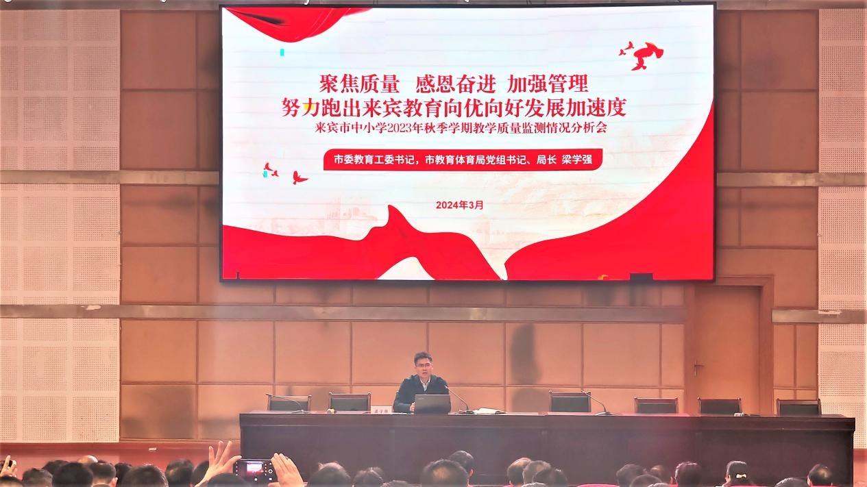 3月5日,来宾市教育体育局召开全市中小学2023年秋季学期教学质量监测情况分析暨经验交流会,市委教育工委书记、市教育体育局党组书记、局长梁学强出席会议并讲话,市教育体育局党组成员、副局长卓卫力主持会议。