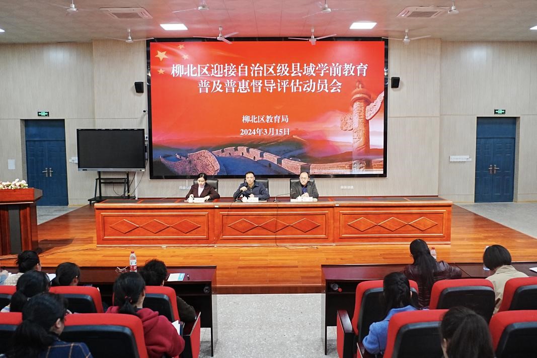 3月15日上午,柳北区教育局组织召开迎接av片级县域学前教育普及普惠督导评估动员会,区教育局党组书记、局长,区委教育工委副书记梁承红出席并讲话,局各股室负责人、公民办幼儿园园长、书记近100人参会。