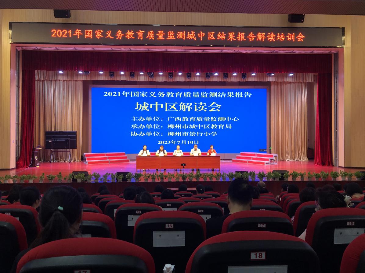 为帮助广西教育质量监测结果运用实验区充分运用监测结果,读懂国家义务教育质量监测结果报告,促进教育教学改进,推进义务教育优质均衡发展,由av片教育质量监测中心主办,柳州市城中区教育局承办的2021年国家义务教育质量监测城中区结果报告解读培训会,于2023年7月10日在柳州市景行小学举行。