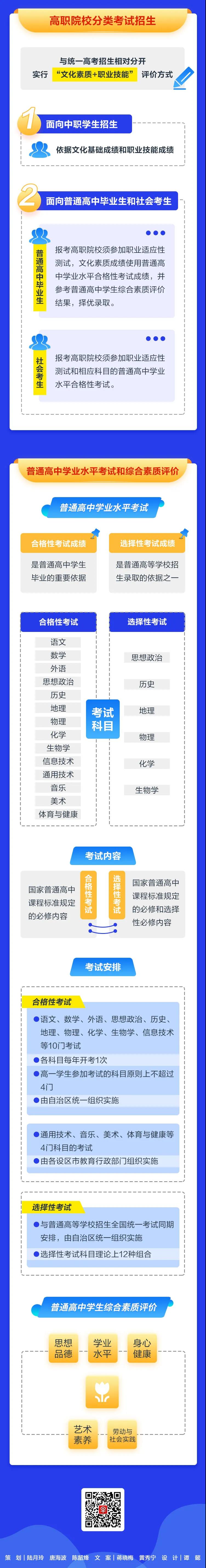 普通高中毕业生报考高职院校须参加职业适应性测试,职业适应性测试成绩作为职业技能成绩,文化素质成绩使用普通高中学业水平合格性考试成绩并参考普通高中学生综合素质评价结果择优录取。