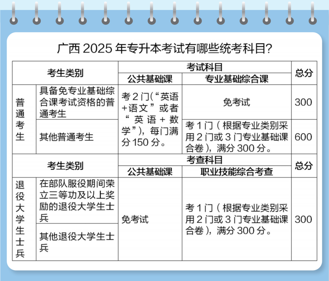按照教育部相关政策,广西的专升本考试对退役大学生士兵考生免考公共基础课,只组织职业技能综合考查。其中,在部队服役期间荣立三等功及以上奖励的退役大学生士兵考生,其职业技能综合考查成绩只作为排序投档依据,且优先投档,足额录取。
