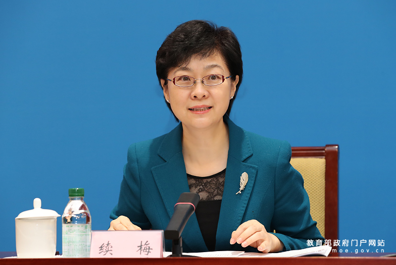 教育部新闻办主任、新闻发言人续梅主持发布会。(中国教育报记者 张劲松/摄)