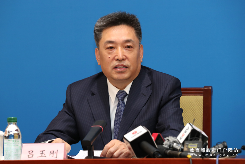 教育部基础教育司司长吕玉刚介绍学校落实“双减”工作情况。 (中国教育报记者 张劲松/摄)
