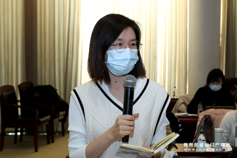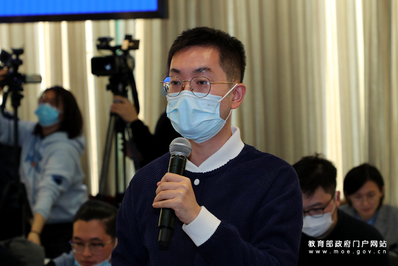 澎湃新闻记者提问。(中国教育报记者 张劲松/摄)
