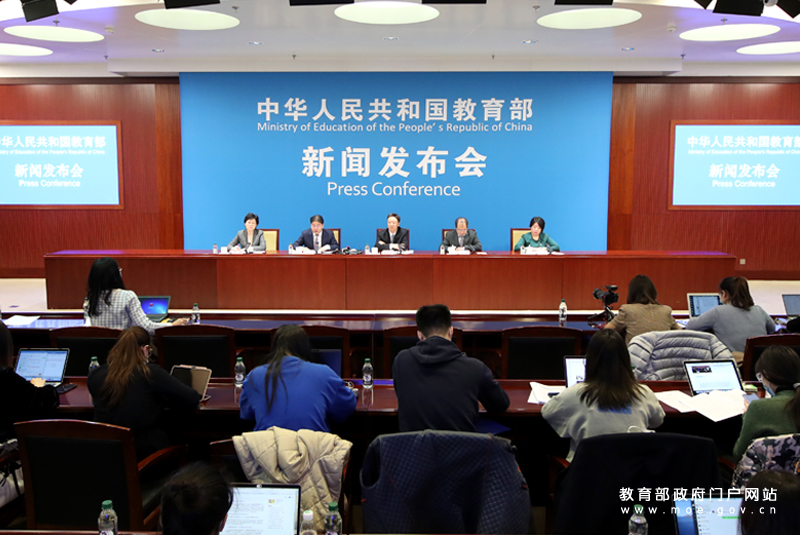 教育部召开新闻发布会介绍三年来贯彻落实学校思想政治理论课教师座谈会精神工作进展成效。(中国教育报记者 张劲松/摄)