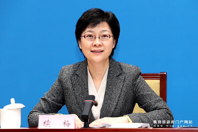 教育部新闻办主任、新闻发言人续梅主持发布会。(中国教育报记者 张劲松/摄)