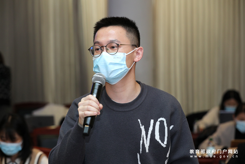 中国青年报记者提问。(中国教育报记者 张劲松/摄)