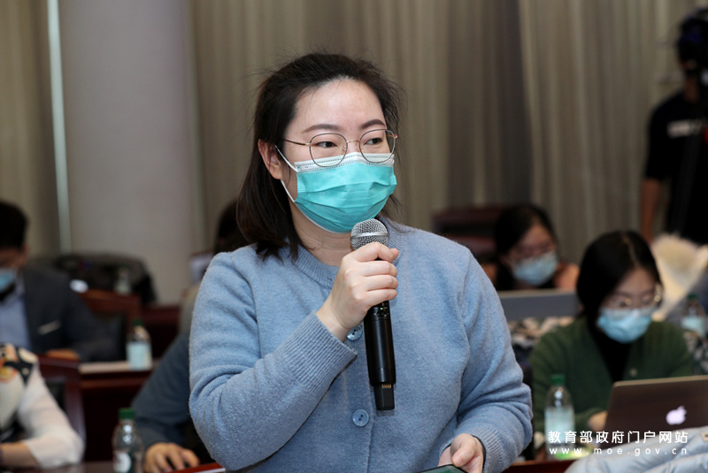 光明日报记者提问。(中国教育报记者 张劲松/摄)